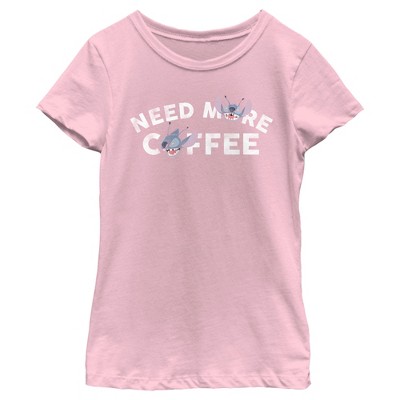 Girl's Lilo & Stitch Need More Coffee Distressed Stitch T-Shirt