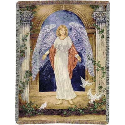 Faith and Protection Tapestry Throw – Guardian Angel Cotton 51x68 inch by Manual Woodworkers and Weavers
