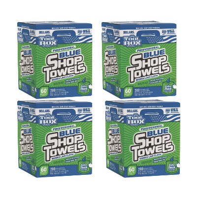 Sellars Blue Shop Towels, 1-Ply, 10 x 12, Blue, 200 Sheets / Box, 4 Boxes / Carton