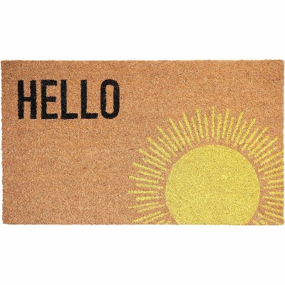 HomeRoots 24" X 36" Natural And Black Hello Distressed Outdoor Coir Door Mat