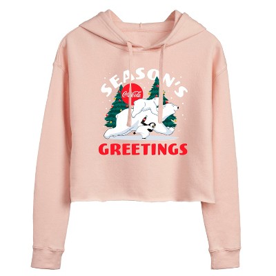 Women's - Coca-Cola - Happy Holidays Bears And Tree Cropped Graphic Hoodie