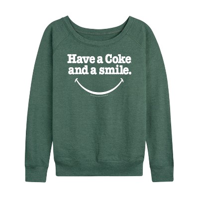 Women's - Coca-Cola - Have A Coke And A Smile Lightweight French Terry Wide Neck Long Sleeve Graphic Shirt
