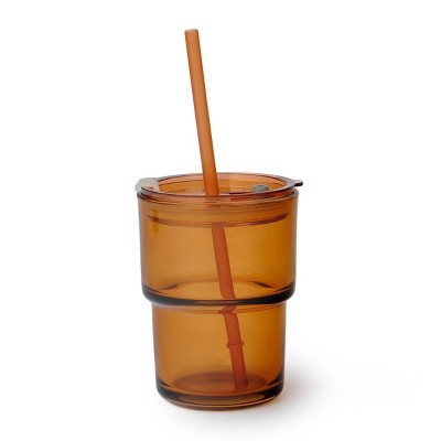 13oz Glass Cup with Straw Brown - Bullseye's Playground™