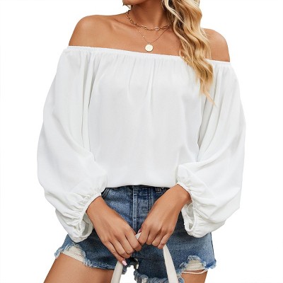 Imily Bela Womens Off The Shoulder Top Long Bell Sleeve Blouse Loose Fit