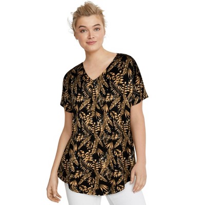 Ellos Stretch Knit V-Neck Short Sleeve Tunic