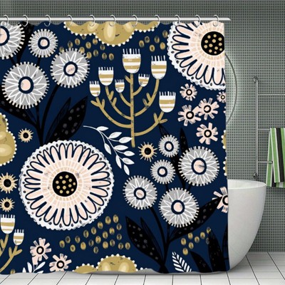 Boho Floral Shower Curtain, Modern Abstract Flower Shower Curtains, Fabric Cloth Colorful Leaves Shower Curtain 70.8x70.8 Iniches