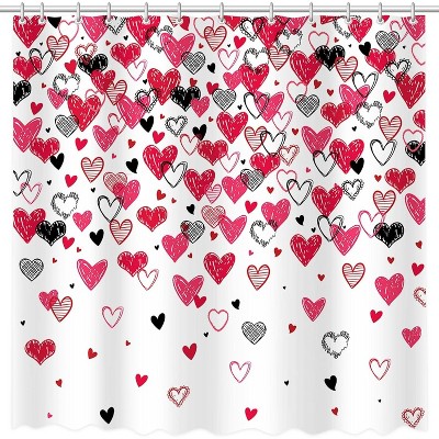 Nertpow 1PC Red Pink Black Doodle Style Love Hearts Shower Curtain for Valentine's Day Bathroom Decor,Romantic Bathroom Decor Curtains with 12 Hooks.