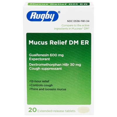 Rugby Mucus Relief DM ER 1200-60 mg Tablets, Extended-Release Cough Suppressant & Expectorant for Congestion, 14 Count