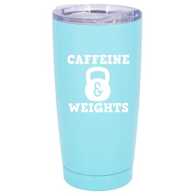 100 North 20 Ounce Stainless Steel On the Go Travel Tumbler With Push Top Lid, Caffeine and Weights Teal
