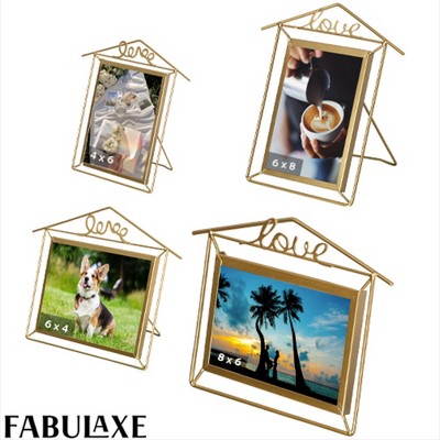 Fabulaxe Decorative Gold Metal Floating Picture Frame Vertical & Horizontal Photo Display with Easel Back
