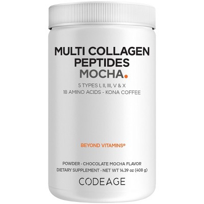 Codeage Multi Collagen Peptides Mocha Powder, Grass-Fed, Hydrolyzed Collagen Protein Supplement - 14.39 oz