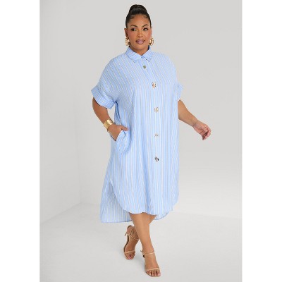 Women's Button Detailed Striped Shirtdress - Ashley Stewart