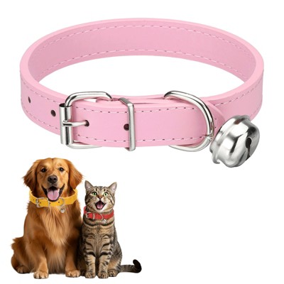 Unique Bargains Dog Collar with Bell Adjustable Buckle PU Leather Dog Collars