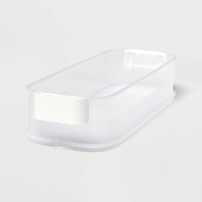 Click in Place 3qt Clear Shallow Slim Plastic Storage Bin with White Latch for Home and Office Organization - Brightroom™