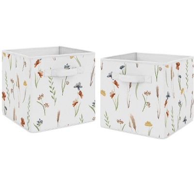 Sweet Jojo Designs Girl Fabric Storage Bins Set Watercolor Floral Garden Green Blue and Orange
