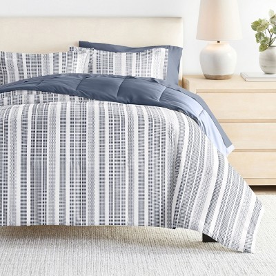 Soft Stripe Modern Reversible Soft Comforter Sets, Geometric Pattern - Becky Cameron, Soft Stripe / Light Blue, Twin/Twin Extra Long