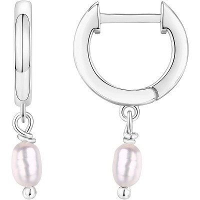 Christmas Gifts Dainty Pearl Earrings - Trendy 14k Gold Plated/Silver Bridal Small Hoop Drop Dangle Earring