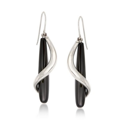 Ross-Simons Black Onyx Teardrop and Sterling Silver Spiral Drop Earrings