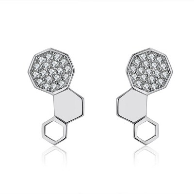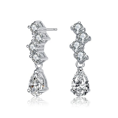 Guili Sterling Silver Rhodium Plated Clear Pear and Round Cubic Zirconia ZigZag Drop Earrings, a Chic and Modern Representation of Refinement
