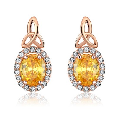 Halo Drop Earrings for Women Yellow Cz Rose Sterling Silver Ginger Lyne Collection