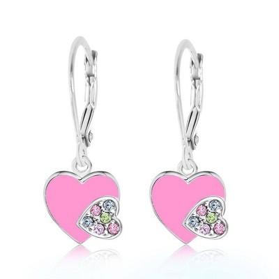 Chanteur Hypoallergenic Kids Jewelry Accessories Heart Enamel Crystal White Gold Palladium Plating Earrings leverback is made from 925 Sterling silver
