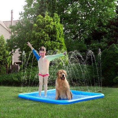Joyfy 6ft Blue Splash Pad for Kids, Slip-Resistant Outdoor Water Sprinkler Mat, Summer Fun Backyard Fountain Pool Water Games Mat
