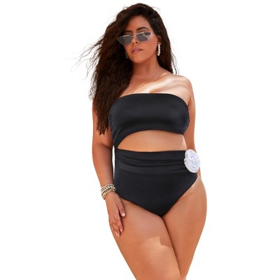 Swimsuits for All Rosette Shimmer Cut-Out Bandeau One Piece Swimsuit (Plus Sizes Available)