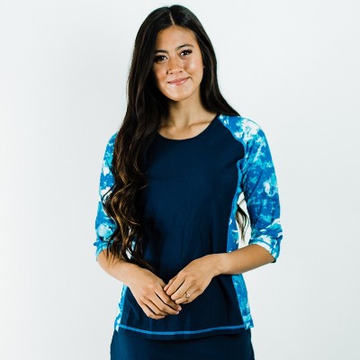 Calypsa Women's Plus Size 3/4 Sleeve Rash Guard UPF 50+ Margaux Swim Top