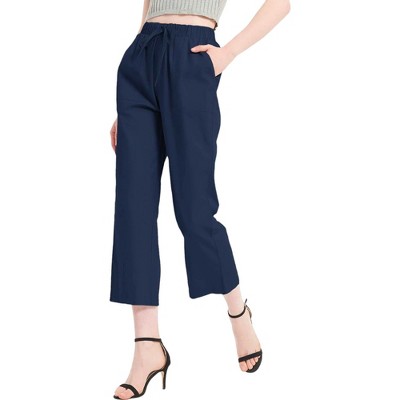 Womens Pants Summer Drawstring Ruffle Hem Elastic Waist Wide Leg Pants