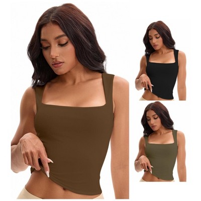 INSPIRE CHIC Women's 3 Pcs Square Neck Plain Back Sleeveless Tank Tops Basic Fitted Camisoles
