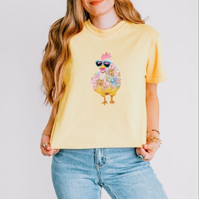 Sunglasses Chick Paint Print - Women's Boxy Crop Top Graphic T-Shirt