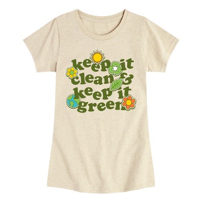 Girls' - Instant Message - Keep Clean, Keep Green Fitted Short Sleeve Graphic T-Shirt