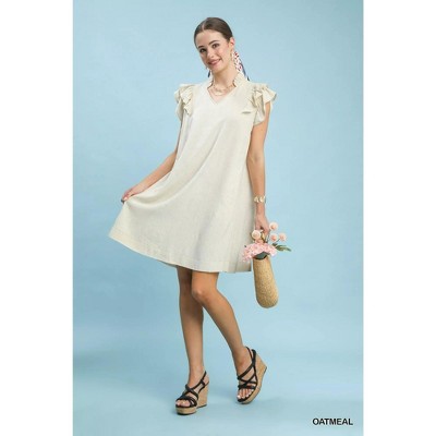 Umgee Linen Flutter Sleeve Shift Dress with Pockets