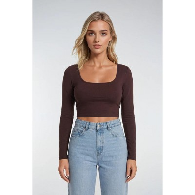 F21 WGA SQUARE NECK LONG SLEEVE TOP
