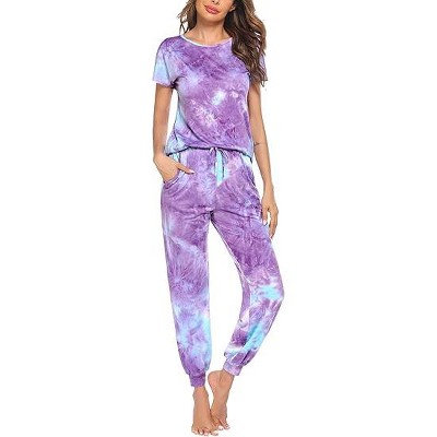 Ekouaer Womens Pajama Sets Short Sleeve Lounge Sets for Women Printed Jogger Pajama Set 2 Piece Pj Sets With Pockets