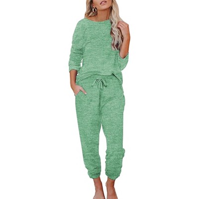 Ekouaer Womens 2 Piece Matching Lounge Sets Fall Outfits Sweatsuit Waffle Knit Pajamas Sets Long Sleeve Sweater Clothes
