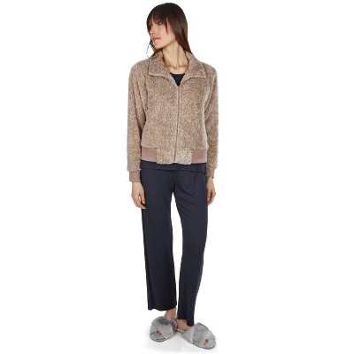 Memoi Women's Plush Zippered Front Warm and Cozy Jacket Light