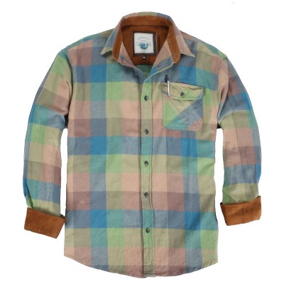 Gioberti Men's Long Sleeve Brushed Flannel Plaid Checkered Shirt with Corduroy Contrast