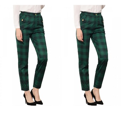 Allegra K Women's Plaid High Waist Elastic Back Office Work Ankle Pants 2 Packs