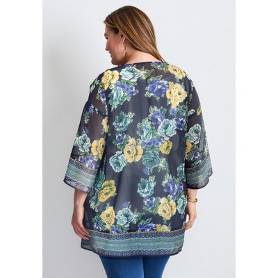 YESFASHION Women Plus Size Cardigan Round Neck Button Down 3/4 Sleeve Top Solid Casual Cardigan