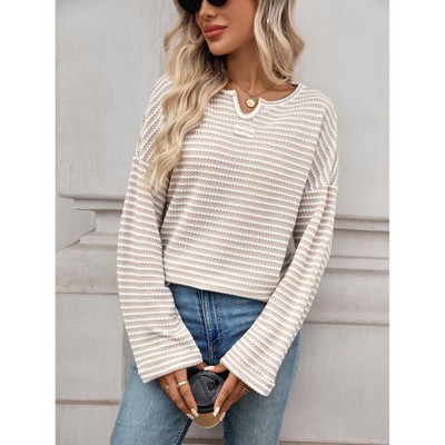 Womens Waffle Knit Tops Oversized Long Sleeve Crewneck Shirts Business Casual Blouses Basic Shirts