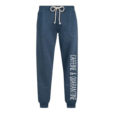 Women's Instant Message Caffeine And Quarantine Graphic Fleece Joggers - Heather Indigo - Medium