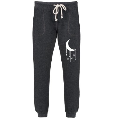 Women's Instant Message Moon And Falling Stars Graphic Fleece Joggers - Heather Indigo - Small
