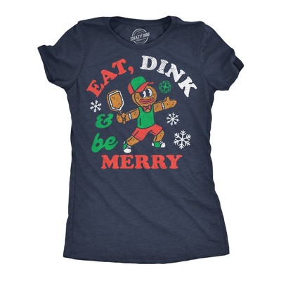 Womens Funny T Shirts Eat Dink And Be Merry Sarcastic Christmas Graphic Novelty Pickleball Tee For Ladies - Crazy Dog Women's T Shirt Gift For XL