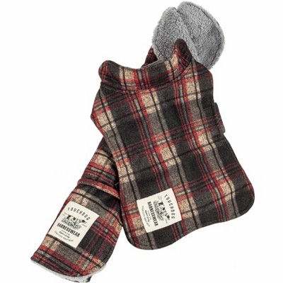 - red and black plaid dog jacket