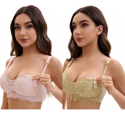 INSPIRE CHIC Women's Nursing Bra Lace V Neck Wirefree Light and Breathable Maternity Bralette 2 Packs