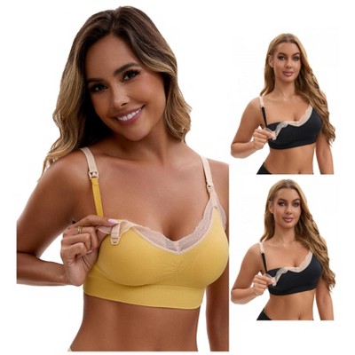 INSPIRE CHIC Women's Lace Trim Soft Cup Nursing Bras Wirefree Front Closure Breastfeeding Maternity Lingerie 3 Packs