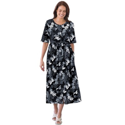 Woman Within Button-Front Elbow-Sleeve Knit Dress