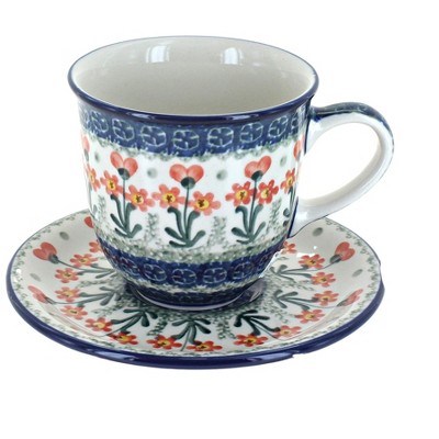 Blue Rose Polish Pottery 7370 Ceramika Artystyczna Mug & Saucer Gift Set