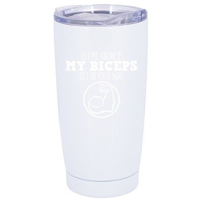 100 North 20 Ounce Stainless Steel On the Go Travel Tumbler With Push Top Lid, Hustle for the Muscle White